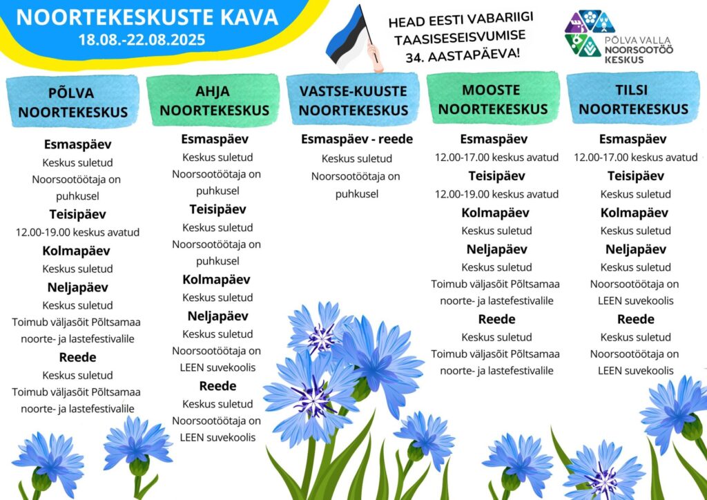 Noortekeskuste kava 18.08.2025-22.08.2025