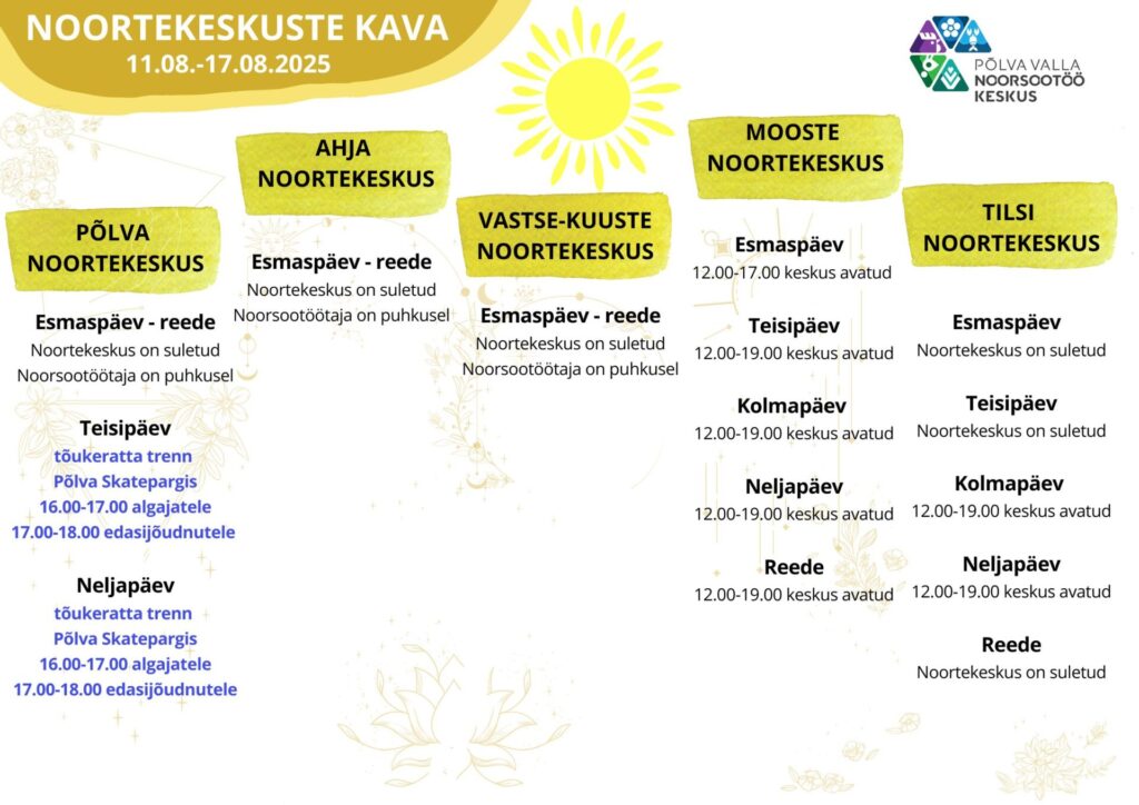 Noortekeskuste kava 11.08.2025-17.08.2025