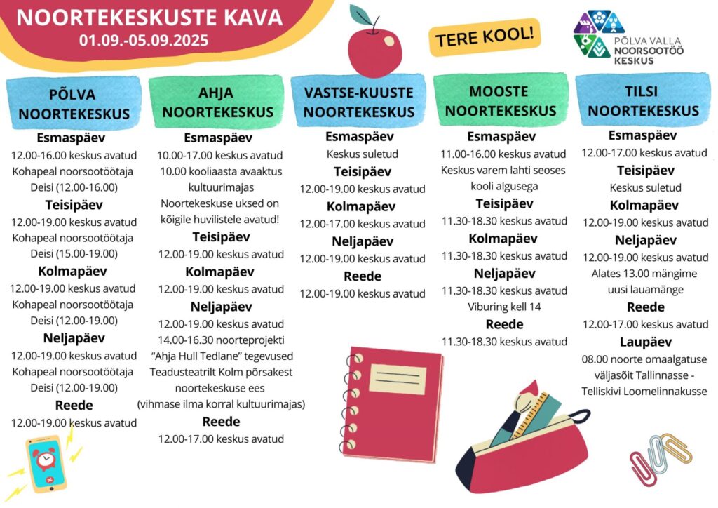 Noortekeskuste kava 01.09.2025-05.09.2025
