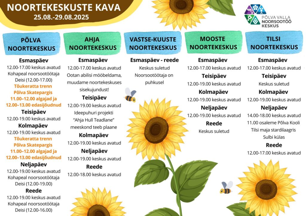 Noortekeskuste kava 25.08.2025-29.08.2025