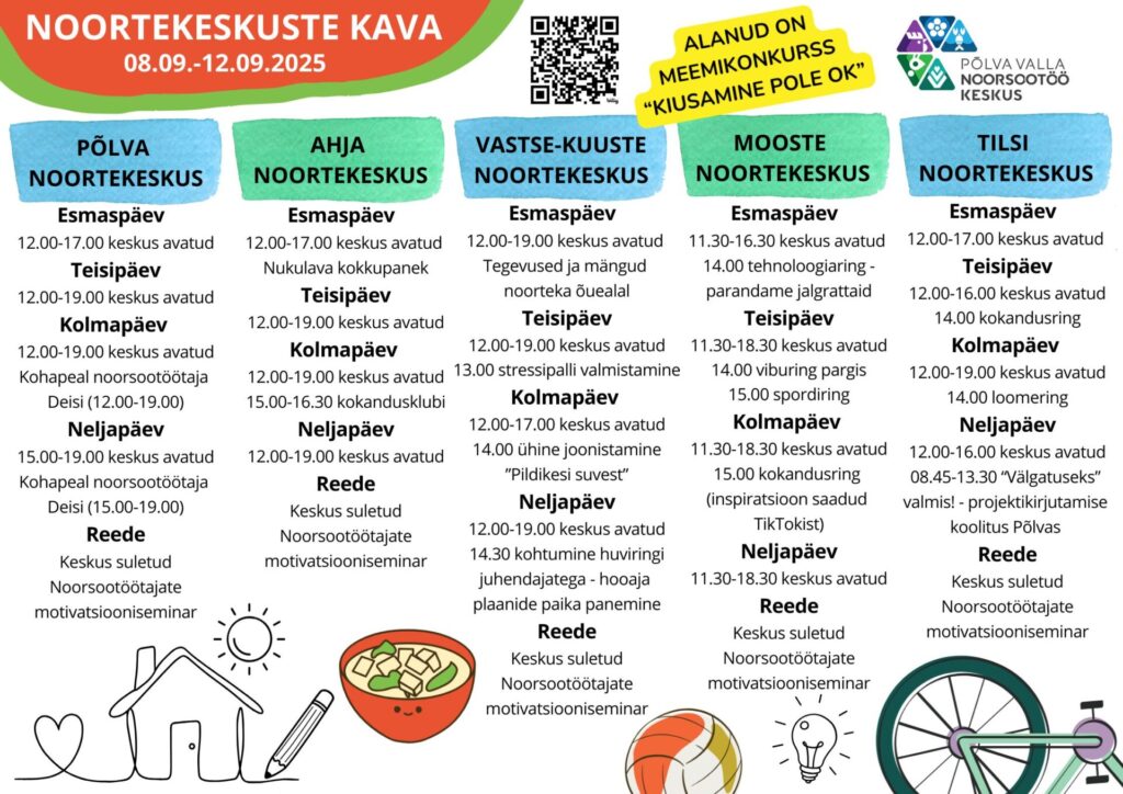 Noortekeskuste kava 08.09.2025-12.09.2025
