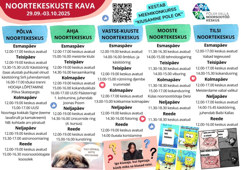 Noortekeskuste kava 29.09.2025-03.10.2025
