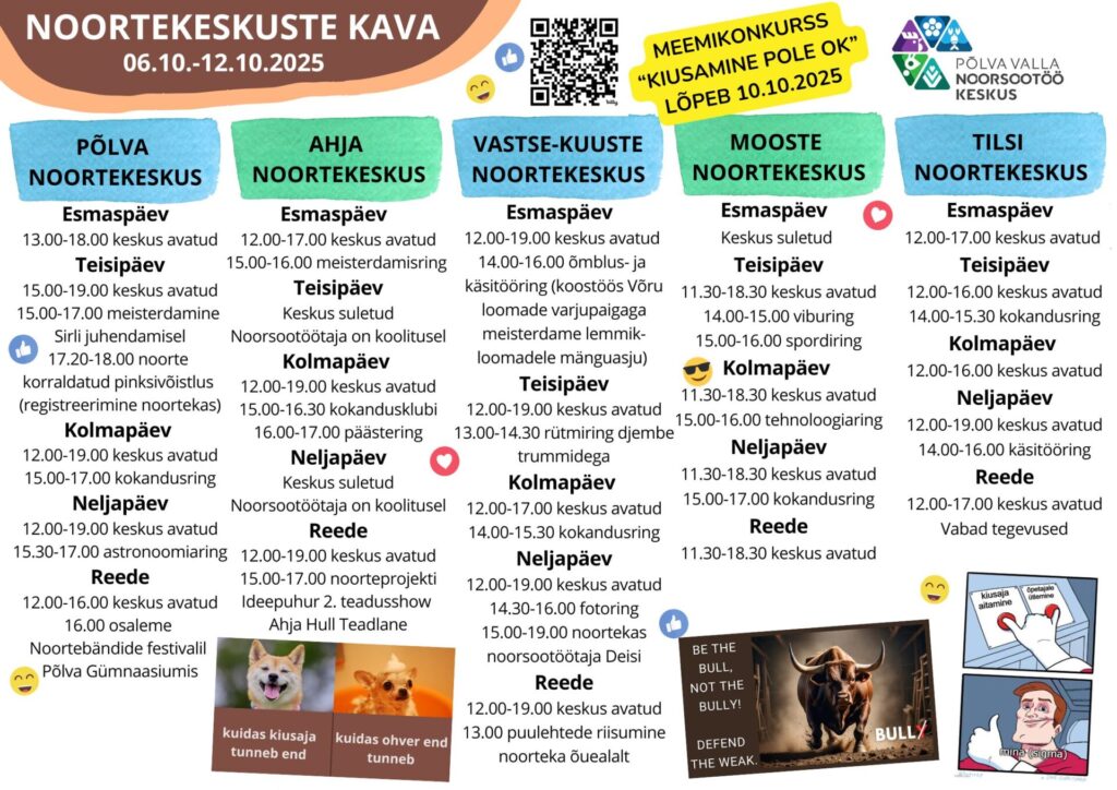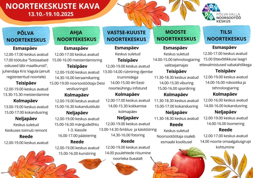 Noortekeskuste kava 13.10.2025-19.10.2025